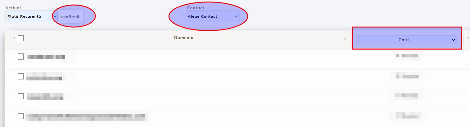 If "Recurring Payment" is selected, the domains for which recurrence activation is desired will need to be checked manually. However, if "Recurring Payment All" is selected, all domains in the account will be automatically checked.