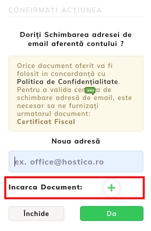 In this tutorial, the procedure applied for changing the email address in the Hostico client account is exemplified.