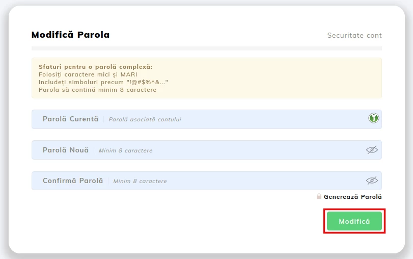 - To ensure that the chosen password is secure, it is advisable to use different types of characters (numbers, symbols, uppercase and lowercase letters).