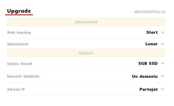 • For downgrade orders, it is recommended to contact online support or send a notification to office@hostico.com, as a series of factors need to be analyzed before the transition is made.