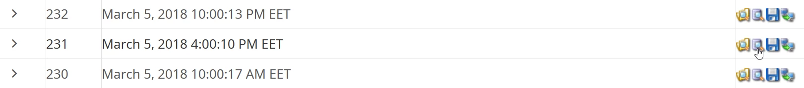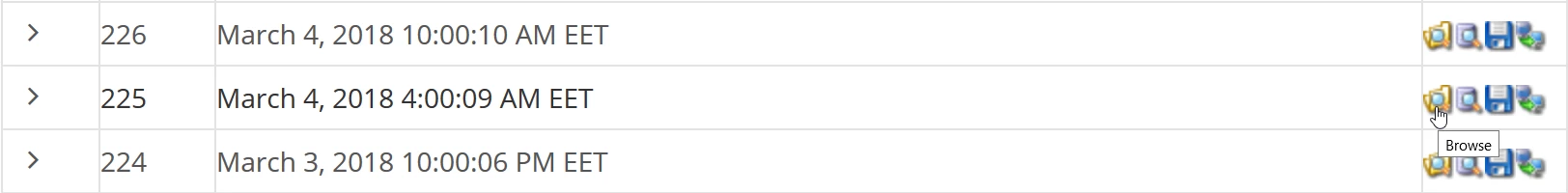 - As with file restoration, we will choose the desired date, but this time we will click on the symbol