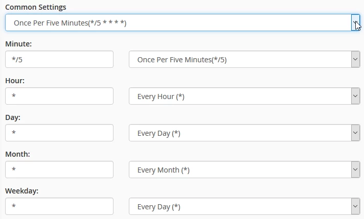Setting a cron job in the cPanel interface