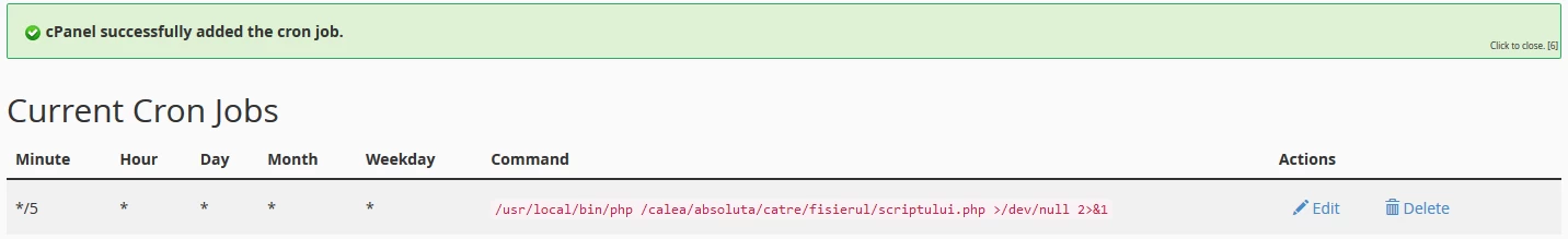 - Subsequently, a confirmation message will appear, and the cron will be visible at the bottom of the page where it can be edited.